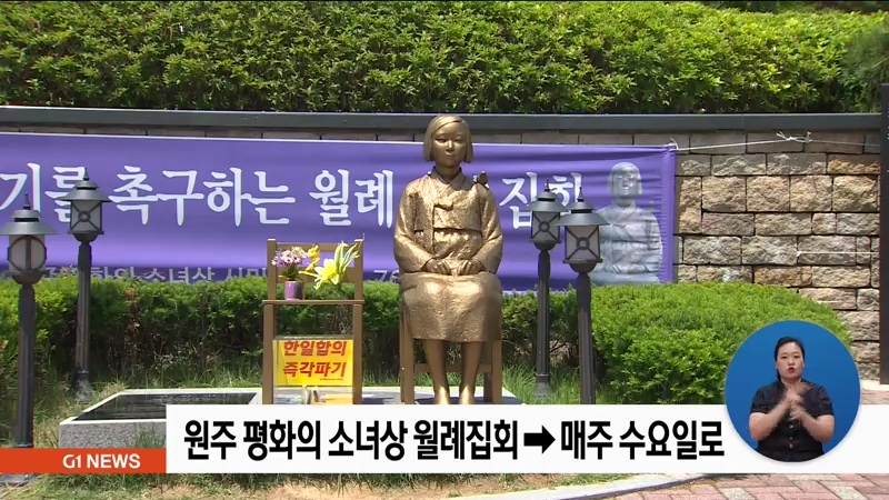 원주 평화의 소녀상 시민모임은 일본 아베 정권의 경제보복이 철회될 때까지 원주 평화의 소녀상 건립에 참여한 65개 단체가 릴레이로 매주 수요일 집회를 연다고 밝혔습니다.