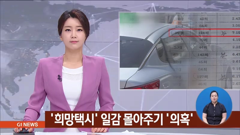 "희망택시 배차가 배차 권한을 가지고 있는 사람과 관계있는 일부 택시회사에만 편파적으로 몰리고 있다는 의혹이 일고 있습니다."