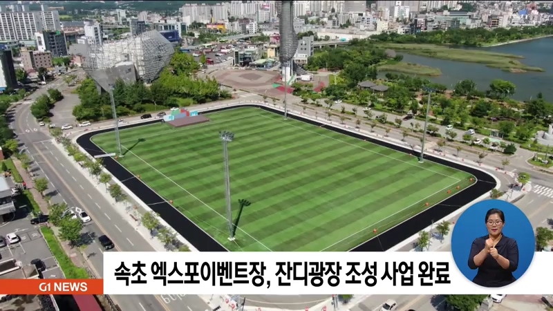속초시는 엑스포 상설이벤트장에 15억원을 들여 만㎡에 인조잔디를 깔고, 조명탑 4기와 육상·인라인 트랙을 설치하는 사업이 완료됐다고 밝혔습니다.