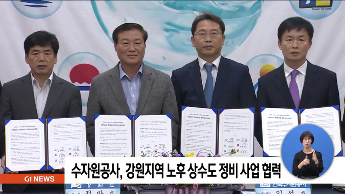 한국수자원공사와 강원도, 4개 시군이 업무 협약을 맺고 노후 수도관 정비 사업에 함께 노력하기로 했습니다.