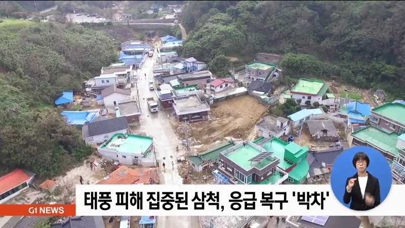 제18호 태풍 '미탁'으로 큰 피해를 입어 특별재난지역으로 선포된 삼척 피해 지역에 대한 응급 복구 작업이 속도를 내고 있습니다.