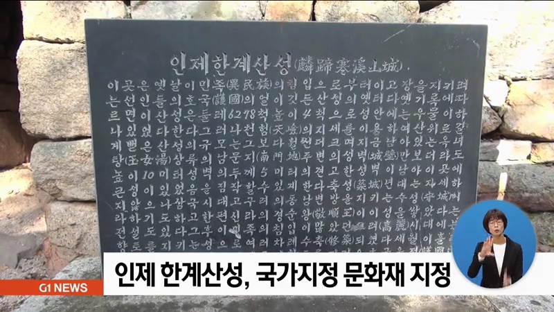 인제 한계산성이 오는 21일 국가지정 문화재 사적 533호로 지정·고시될 예정입니다.
