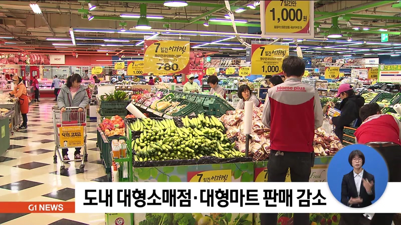 지난 9월 도내 대형소매점과 대형마트의 판매가 지난해 같은 기간과 비교해 모두 감소한 것으로 나타났습니다.