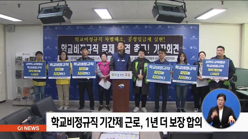 강원도교육청과 학교비정규직연대회의가 학교 청소원과 당직 전담원 등 특수 운영직군의 정년 후 재임용 관련 협상을 재개해 최종 합의했습니다.