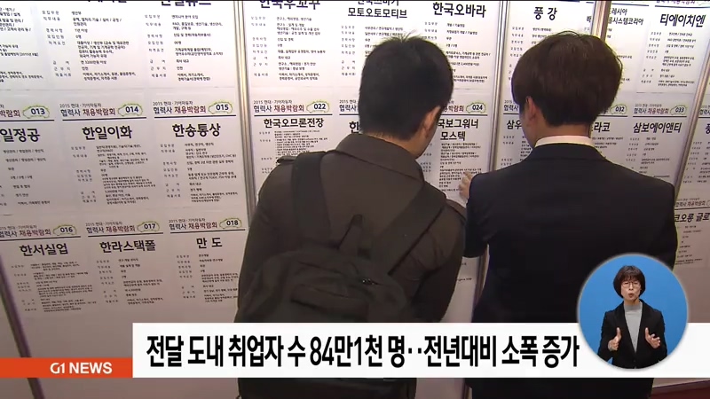 지난달 도내 취업자 수는 84만 천 명으로 지난해 같은 기간보다 증가한 것으로 나타났습니다.
