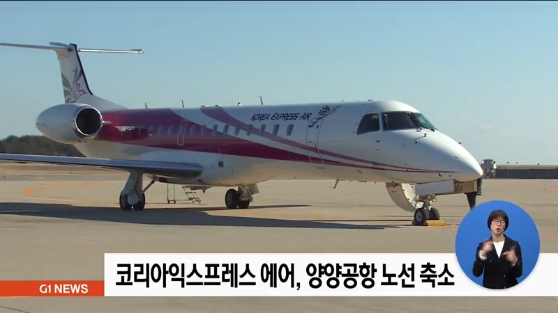 양양국제공항을 거점으로 운영해 온 소형항공사 코리아익스프레스 에어가 플라이강원 취항과 일본 불매운동 여파로 노선이 크게 줄었습니다.