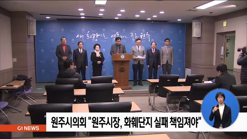 원주 화훼관광단지 지구 지정이 취소된 가운데, 원주시의회 자유한국당 소속 의원들은 어제 기자회견을 열고, 원창묵 시장이 사업 실패에 책임을 져야한다고 주장했습니다.