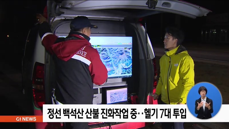 정선 백석산 산불 진화작업 중..헬기 7대 투입