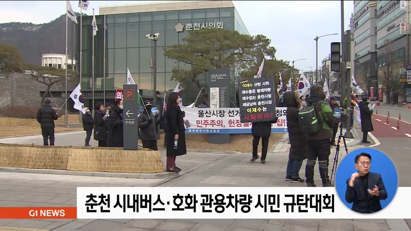 춘천시민자유연합은 어제 춘천시청 앞에서 의견 수렴 절차 없이 일방적으로 춘천 시내버스 노선을 개편해 주민 불편이 가중되고 있다며, 시민이 반대하는 버스 노선 개편을 고집하는 정확한 이유를 밝히라고 요구했습니다.