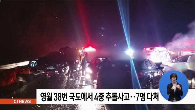 영월 38번 국도에서 4중 추돌사고..7명 다쳐