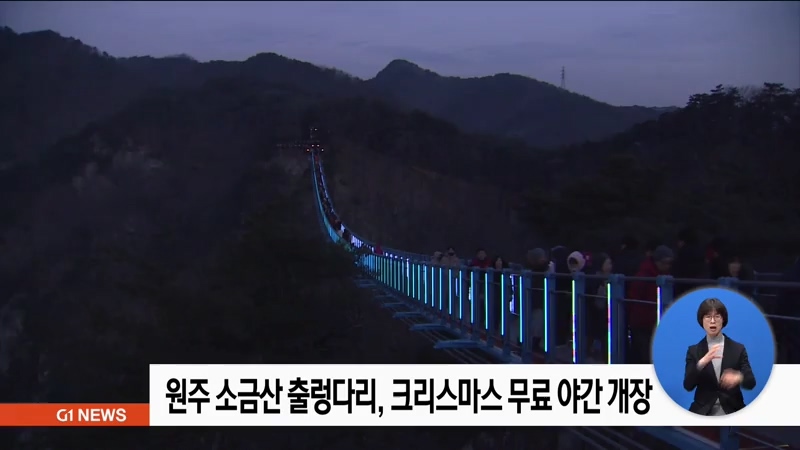 원주시는 내일(24)부터 이틀간 오후 6시부터 저녁 9시까지, 소금산 출렁다리 입장을 무료로 운영합니다.