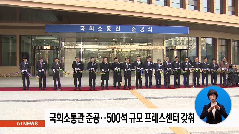 국회는 어제, 문희상 국회의장과 여야 국회의원, 유인태 국회 사무총장 등이 참석한 가운데 국회소통관 준공식을 개최했습니다.