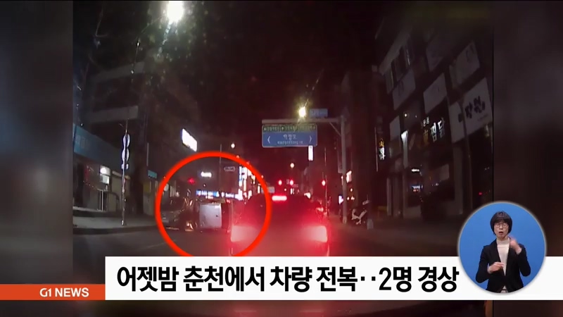 어젯밤 10시 5분쯤, 춘천시 효자동 강원대 후문 사거리에서 모닝 차량이 전복되는 사고가 발생했습니다.