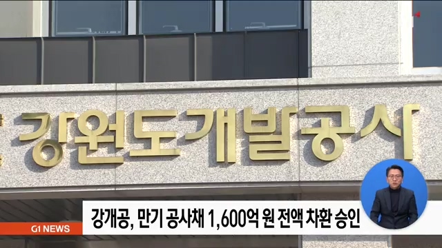 행정안전부는 자치단체 산하 지방공사 등의 공사채 심의 결과, 강원도개발공사가 신청한 1,600억 원의 공사채 차환을 최종 승인했다고 밝혔습니다.