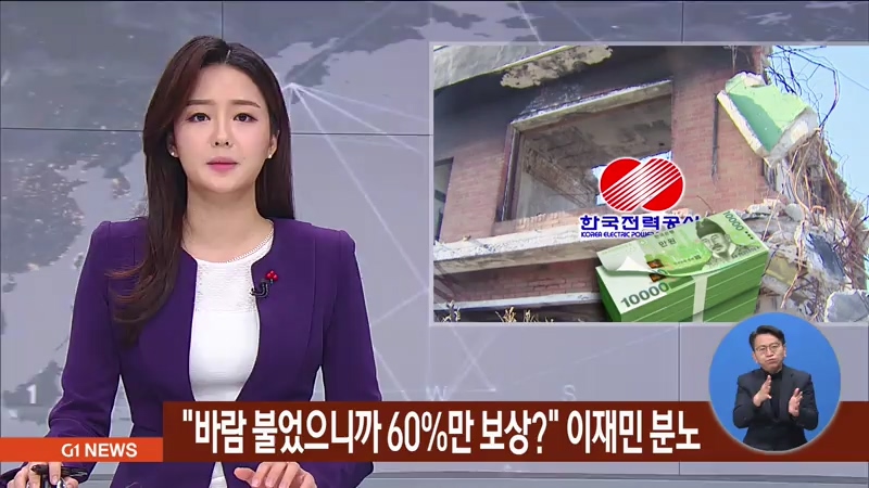 /이에 대해 한전 측은 "산불 발화 당시 강풍의 영향이 컸다"면서 "자연력 기여로 과실이 줄었기 때문에 보상률이 60% 수준으로 결정됐다"라고 밝혔습니다./