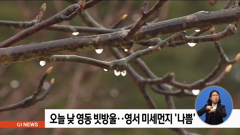 오늘 낮 영동 빗방울..영서 미세먼지 '나쁨'