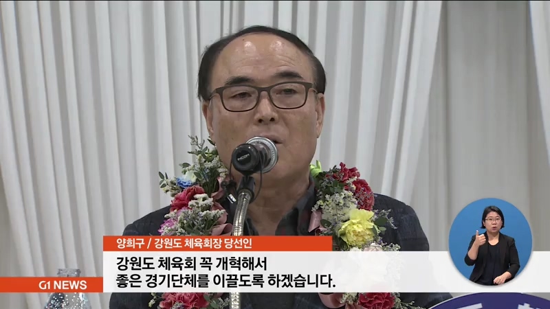 "강원도 체육회 꼭 개혁해서 좋은 경기단체를 이끌도록 하겠습니다. 각 시군마다 단체장님들과 선수들 만나고 화합해서 이끌어 갈 수 있도록 다짐하겠습니다."