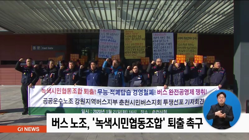 민주노총 공공운수노조 춘천시민버스 지회가 춘천지역 시내버스 운영을 맡고 있는 녹색시민협동조합의 퇴출을 촉구하고 나섰습니다.
