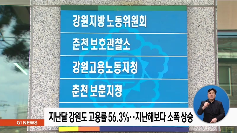 지난달 강원도 내 고용률은 56.3%로 지난해 같은 기간과 비교해 0.9%p 증가했습니다.