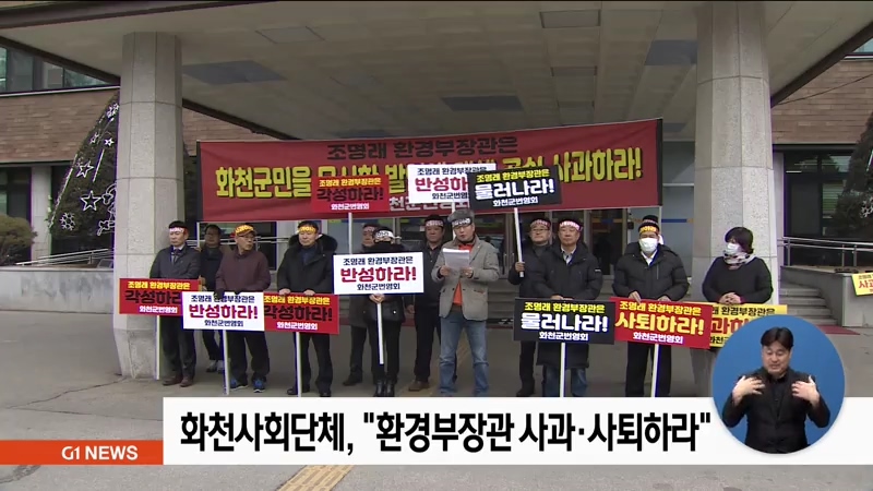 화천군번영회 등 10여 곳으로 구성된 화천지역 사회단체가 조명래 환경부장관의 사과와 사퇴를 촉구하고 나섰습니다.