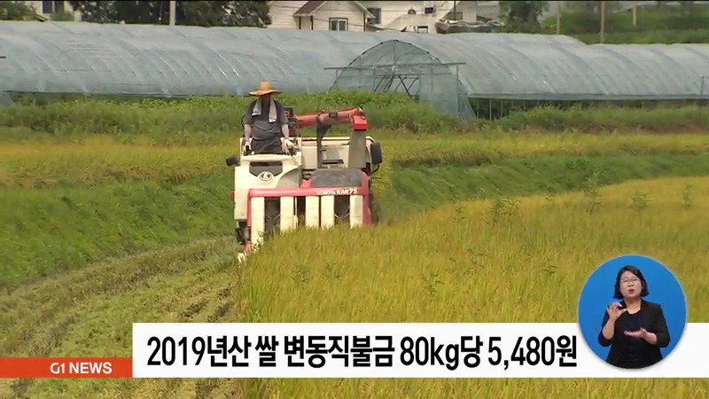 2019년산 쌀 변동직불금 80kg당 5,480 원
