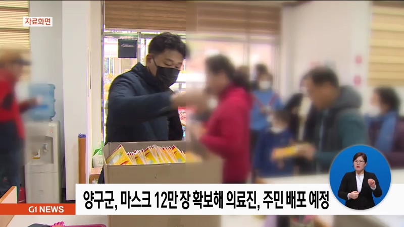 양구군은 마스크 12만장을 조기에 확보해 3만장은 방역 관계자와 보건소, 병원 등 의료진에 공급하고 나머지 9만장은 주민들에게 보급하기로 했습니다.