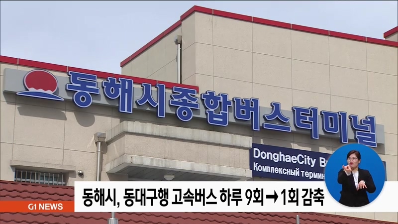 동해시는 동해종합터미널에서 전국으로 이동하는 버스 운행 횟수를 하루 115회에서 64회로 대폭 줄이고, 특히 동대구행 고속버스는 하루 9차례에서 1차례로 감축하기로 했다고 밝혔습니다.