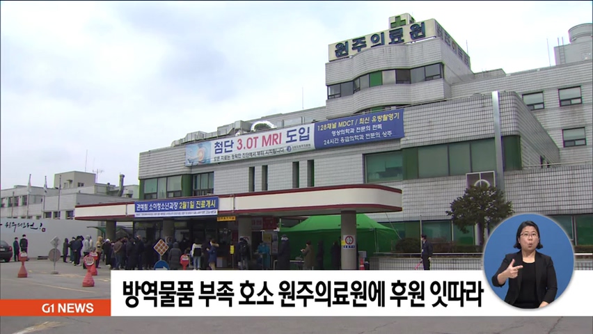 코로나19 방역에 투입되는 원주의료원 의료진들의 방역물품이 부족하다는 G1보도 이후 각계각층에서 후원의 손길이 이어지고 있습니다.