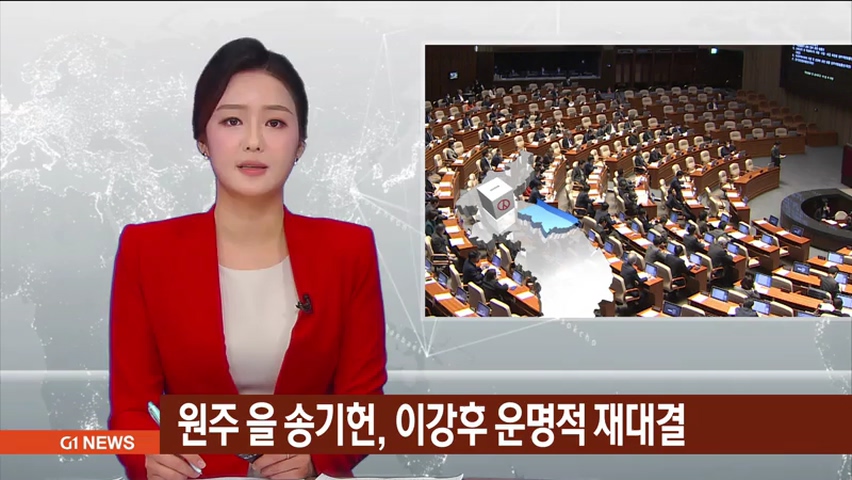 세 번째 대결을 벌이는 송기헌, 이강후 후보 외에도 원주을엔 민중당 이승재, 우리공화당 현진섭, 배당금당 정성호 후보가 예비후보로 등록했습니다.