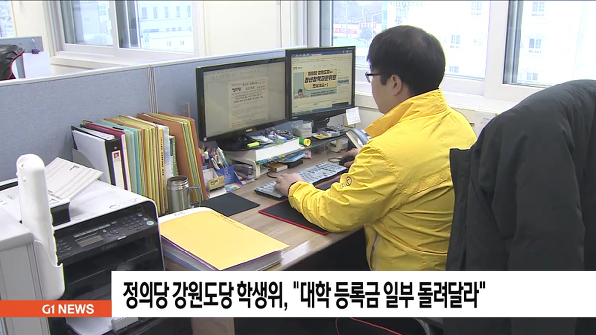 정의당 강원도당 학생위원회는 성명서를 내고, 코로나19 사태로 온라인 비대면 강의를 하고 있는 대학들이 입학금과 등록금 일부를 반환해야 한다고 밝혔습니다.