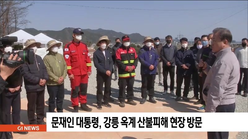 문 대통령은 어제, 강릉시 옥계면 재조림 현장을 찾아, 산불로 피해를 입은 지역 주민들을 위로하고, 산불 진화에 참여한 소방관과 지역 공무원 등 유공자들에게 감사의 뜻을 전했습니다.