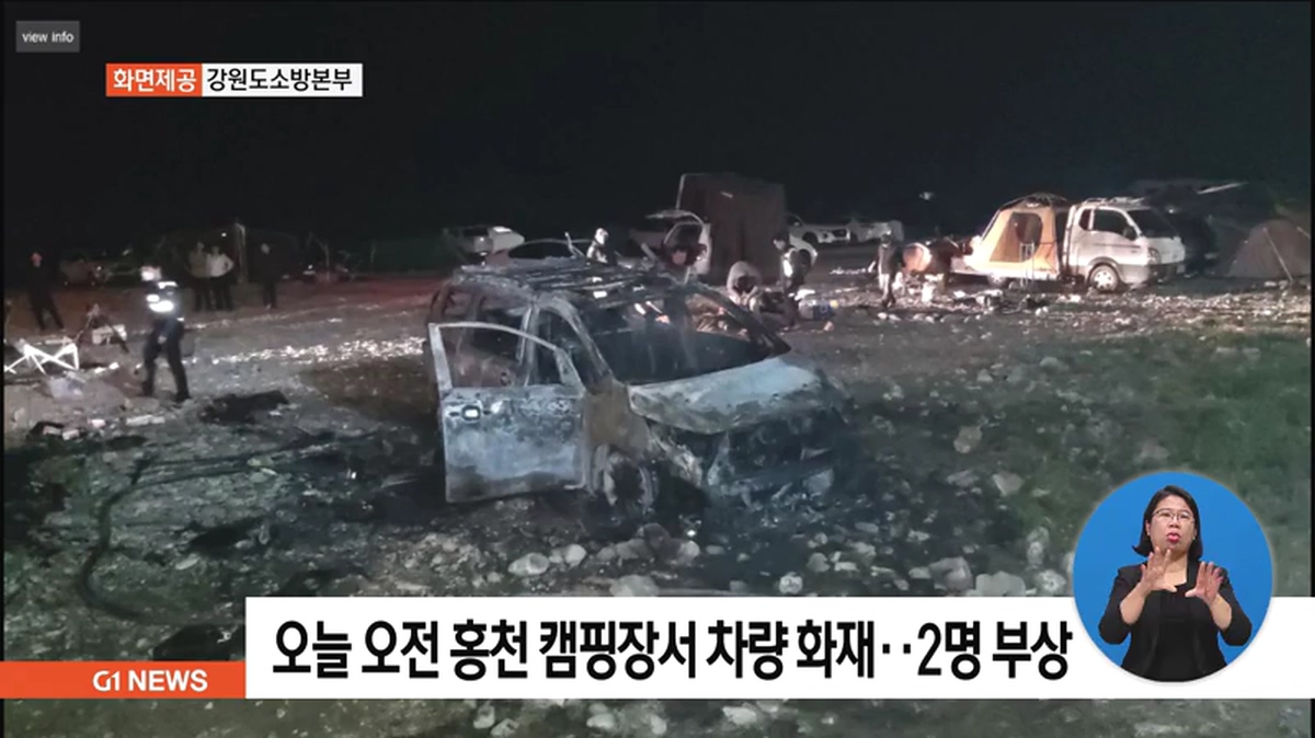 오늘 오전 홍천 캠핑장서 차량 화재..2명 부상