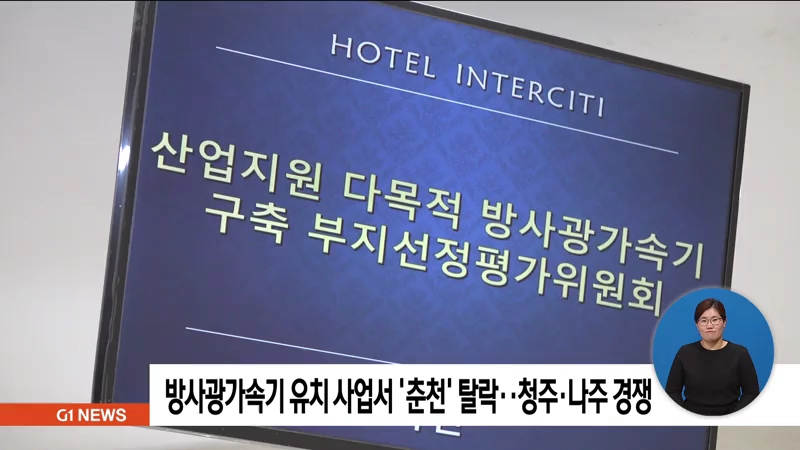 정부가 예산 1조원을 투입해 진행하려는 다목적 방사광가속기 구축사업의 최종 후보지가 충북 청주시와 전남 나주시로 압축되면서, 춘천시는 예선을 통과하지 못했습니다.