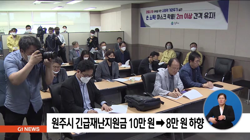 원주시가 당초 시민 1인당 10만 원씩 지급하기로 했던 긴급재난지원금을 8만원으로 변경하기로 했습니다.