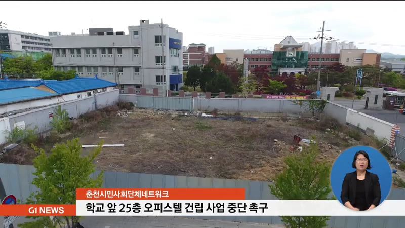 춘천지역 12개 시민사회단체로 구성된 춘천시민사회단체네트워크는 어제 성명을 내고, 춘천 학교 밀집 지역에 추진되고 있는 25층 짜리 오피스텔 신축 사업을 즉각 중단하라고 촉구했습니다.
