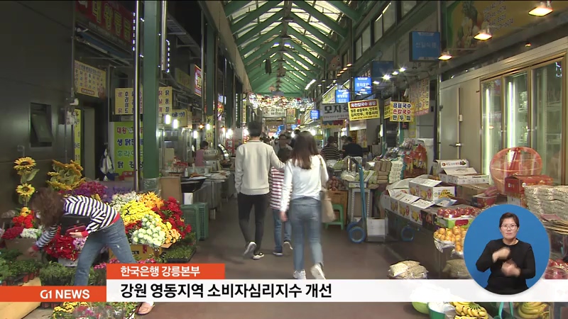 한국은행 강릉본부는 5월 강원 영동지역의 소비자심리지수가 82.1포인트로 나타나, 전월보다 9.4포인트 올랐다고 밝혔습니다.