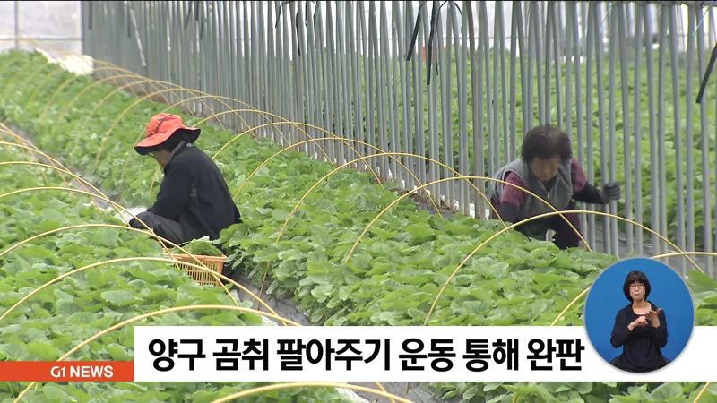 양구군에 따르면, 당초 지난달 1일부터 사흘간 개최하려 했던 곰취축제가 취소돼 곰취 판로에 어려움을 겪을 것으로 우려됐지만, 주민과 출향민 등의 팔아주기 운동을 통해 모두 팔렸습니다.