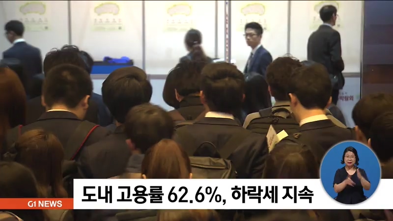 강원지방통계지청에 따르면, 지난달 도내 고용률은 62.6%로, 지난해 같은 기간보다 1.9%p 떨어졌고, 취업자 수도 2만 1000명이 감소해 81만 8천명인 것으로 조사됐습니다.