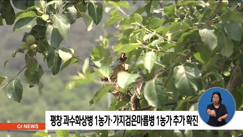 추가 발생지역은 모두 평창군으로, 과수화상병 1농가, 가지검은마름병 1농가입니다.