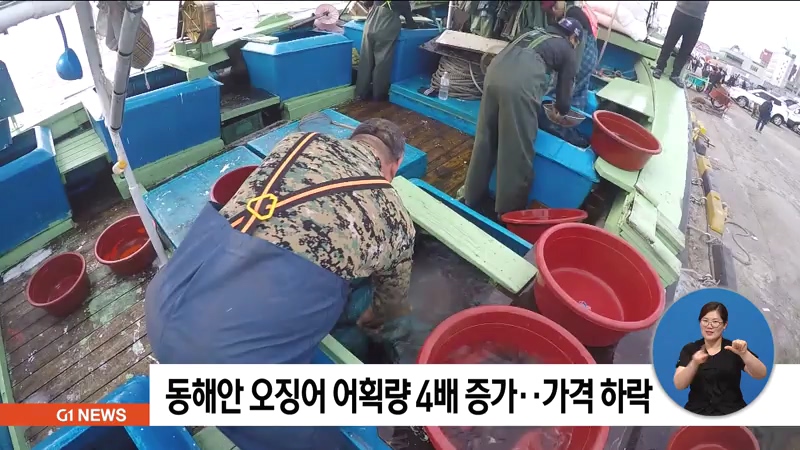 강원도환동해본부에 따르면, 지난달 19일부터 지난 11일까지 동해안에서 잡힌 오징어는 940톤으로, 지난해 같은 기간보다 4배 이상 증가했습니다.