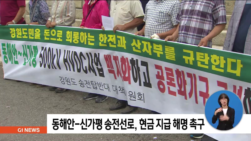 동해안-신가평 송전선로 반대 대책위원회가 한국전력이 도민에게 사실상 현금 지원을 하겠다고 나선 것과 관련해 해명을 촉구하고 나섰습니다.