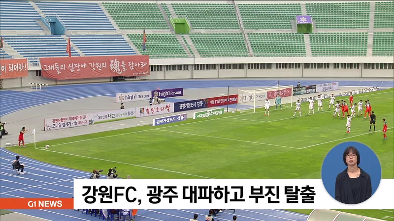 강원 FC가 광주 FC를 상대로 대승을 거두며 리그 4연패 부진에서 벗어났습니다.