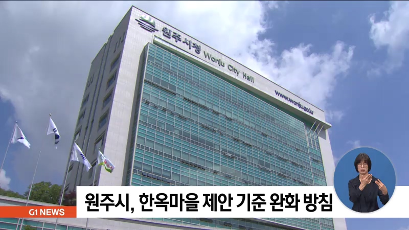 원주시는 당초 한옥 형태의 건축이 가능한 부지 3만 3천㎡ 이상에서 3만㎡ 이상으로 기준을 완화하고, 토지 소유권이나 사용권 확보 조건도 100%에서 50%로 줄이겠다고 설명했습니다.