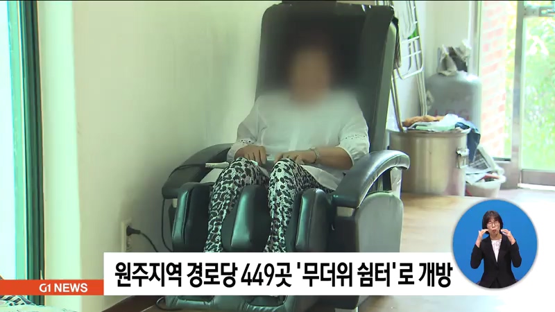 원주시는 폭염에 취약한 노인층에 쉼터를 제공할 필요성이 있다고 판단하고, 오는 20일부터 경로당 449곳을 개방하기로 했습니다.