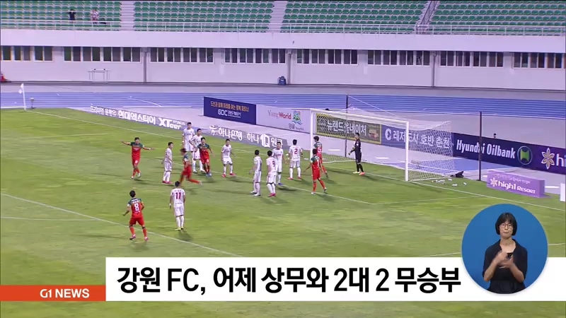 강원 FC는 어제(2일) 강릉 종합운동장에서 홈팬 천 여 명이 입장한 가운데 열린 '하나원큐 K리그1 2020' 14라운드 상주 상무와의 경기에서 치열한 접전 끝에 2대 2 무승부를 기록했습니다.
