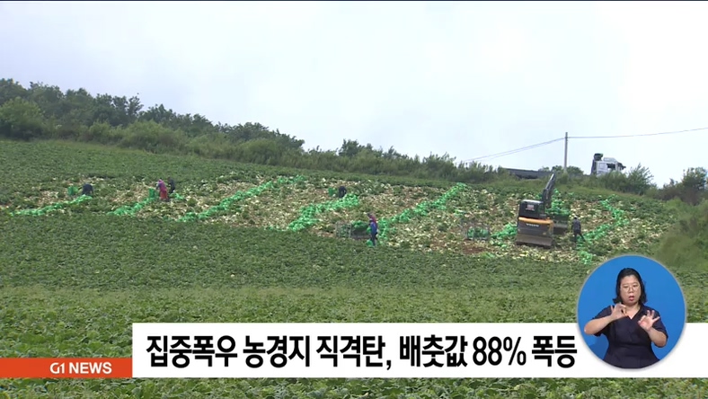집중폭우 농경지 직격탄, 배춧값 88% 폭등