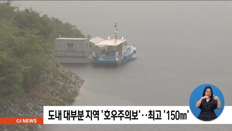 도내 대부분 지역 '호우주의보'..최고 '150mm'