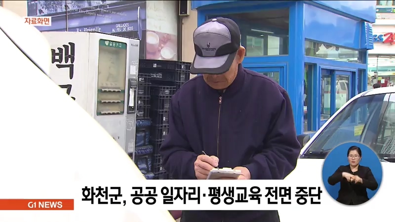 화천군은 노인 일자리와 숲 가꾸기 등 공공근로 일자리 사업을 다음달 9일까지 중단하고,