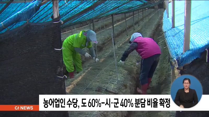 농어업인 수당, 도 60%-시·군 40% 분담 비율 확정