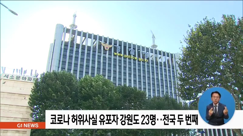 전국에서 코로나 관련 허위사실을 유포한 혐의로 검거된 용의자 187명 가운데 강원도는 23명을 차지해, 32명을 기록한 경기도에 이어 두번 째로 많았습니다.